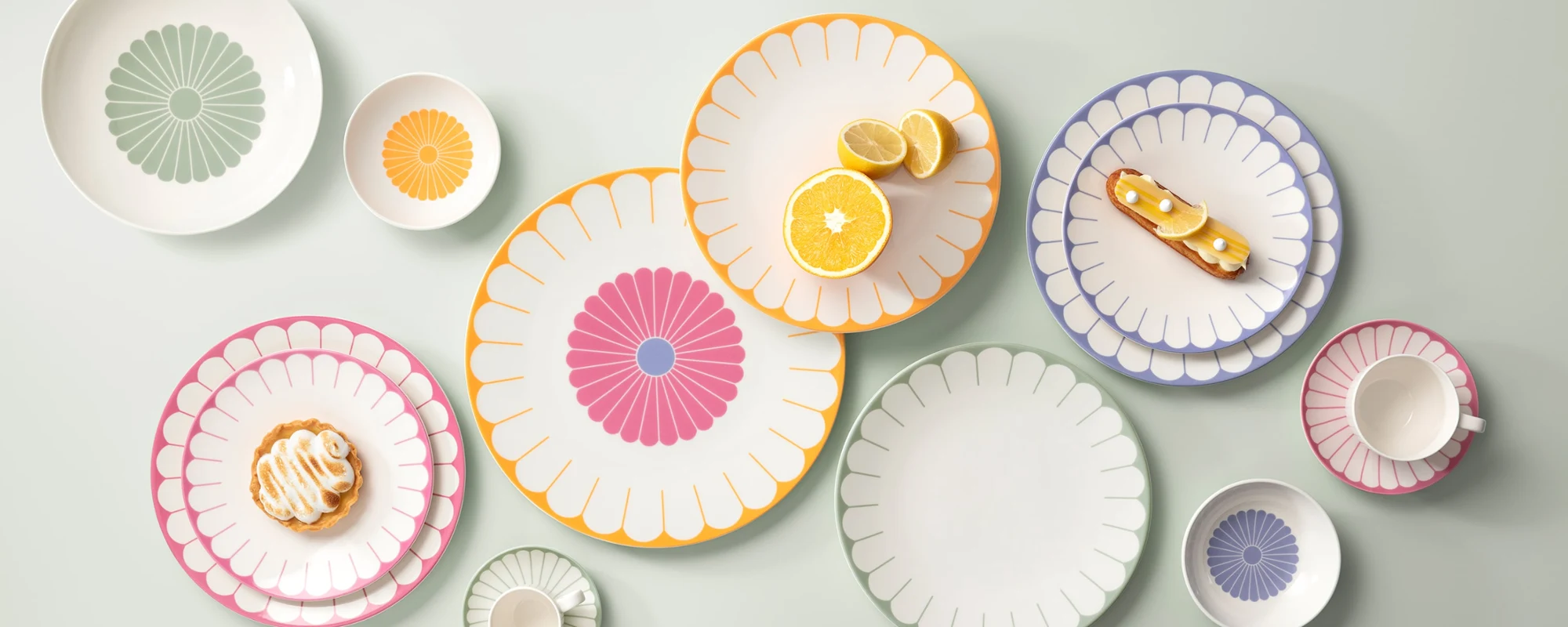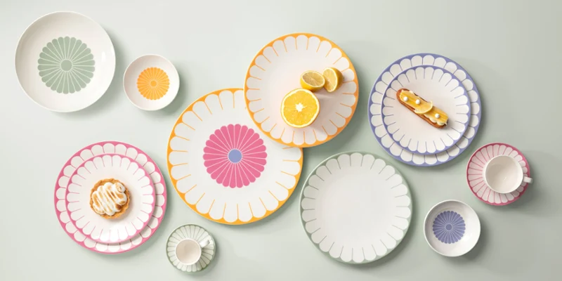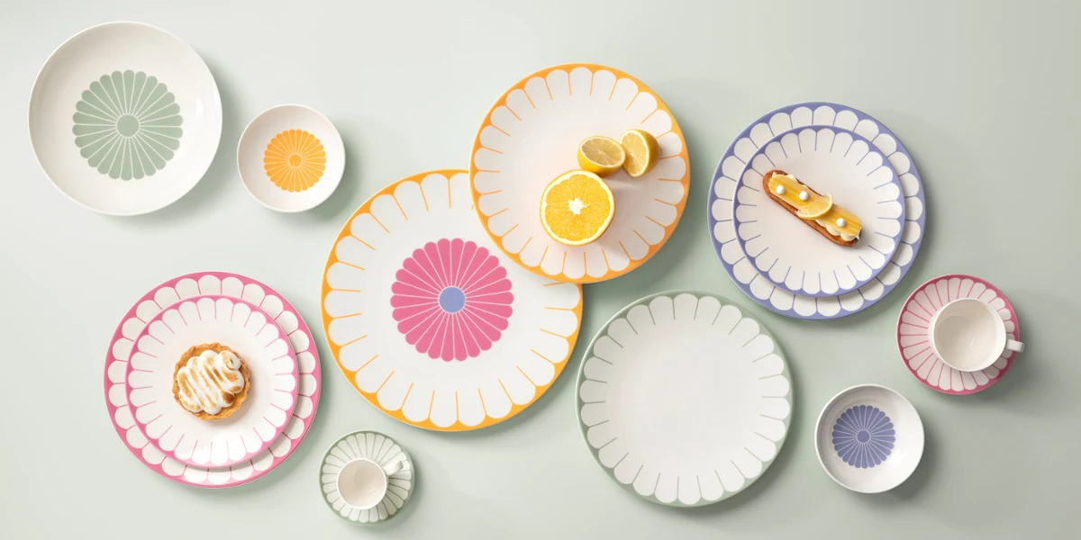 It’s a move away from subtle patterns and toward bold, graphic blooms, clean lines, and a palette so vibrant, it practically leaps off the table.