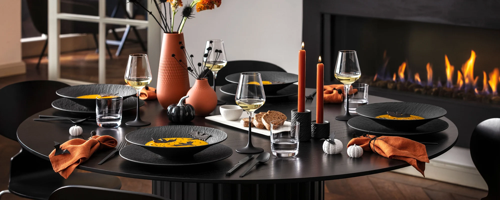 The Manufacture Rock collection offers dinnerware, glassware, and home décor with chic matte accents and slate-like textures. Available in midnight black or ghostly white, this premium German porcelain adds a sophisticated edge to any table setting. Whether you’re hosting an intimate autumn gathering, a Halloween feast, or simply elevating everyday dining, Manufacture Rock brings a striking balance of elegance and versatility.