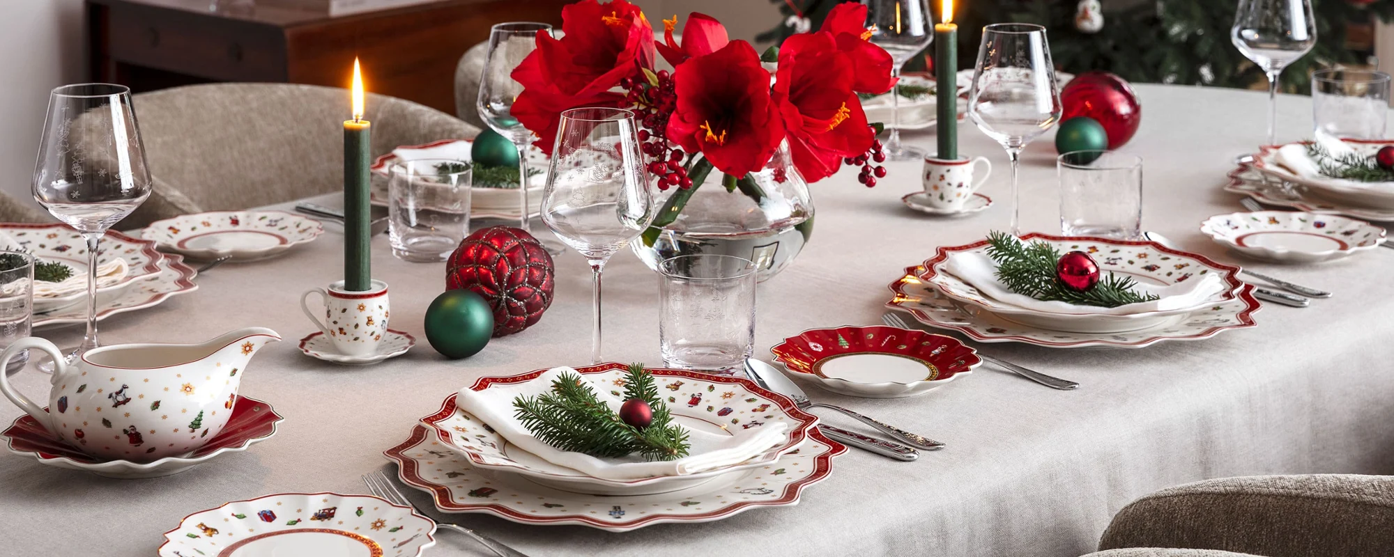 Launched more than a decade ago, the Toy’s Delight collection was conceived to capture the warmth and nostalgia of Christmases past; holiday mornings filled with toy trains, rocking horses, nutcrackers, and Santa figurines. The designs draw inspiration from the traditional toys of the Ore Mountains and the classic Christmas color palette of red, green, white, and gold.